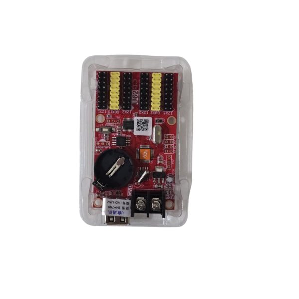 بردکنترل HD-U6A ساخت شرکت هویدو (Huidu) می باشد. ولتاژ کاری این مین کنترل 5 ولت مستقیم می باشد. HD U6A یکی از پر کاربرد ترین کنترلرهای مورد استفاده در بین تابلو سازان و کاربران برای تابلو های تک رنگ می باشد. این مین برد دارای دو خروجی Hub12 می باشد. از این دو هاب 12 برای کانفینگ ماژول های تک رنگ استفاده می شود. این کنترلر دارای 1 مگابایت حافظه داخلی است. این برد کنترل حداکثر از 32 پیکسل در عرض و 320 پیکسل در طول پشتیبانی می کند.